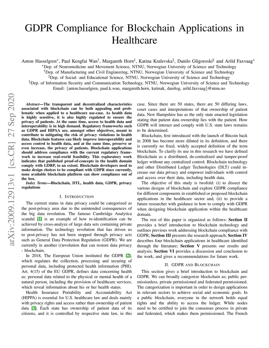 GDPR Compliance for Blockchain Applications in Healthcare