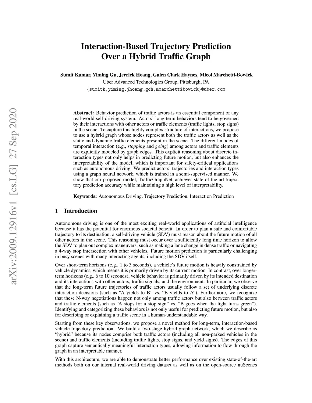 Interaction-Based Trajectory Prediction Over a Hybrid Traffic Graph