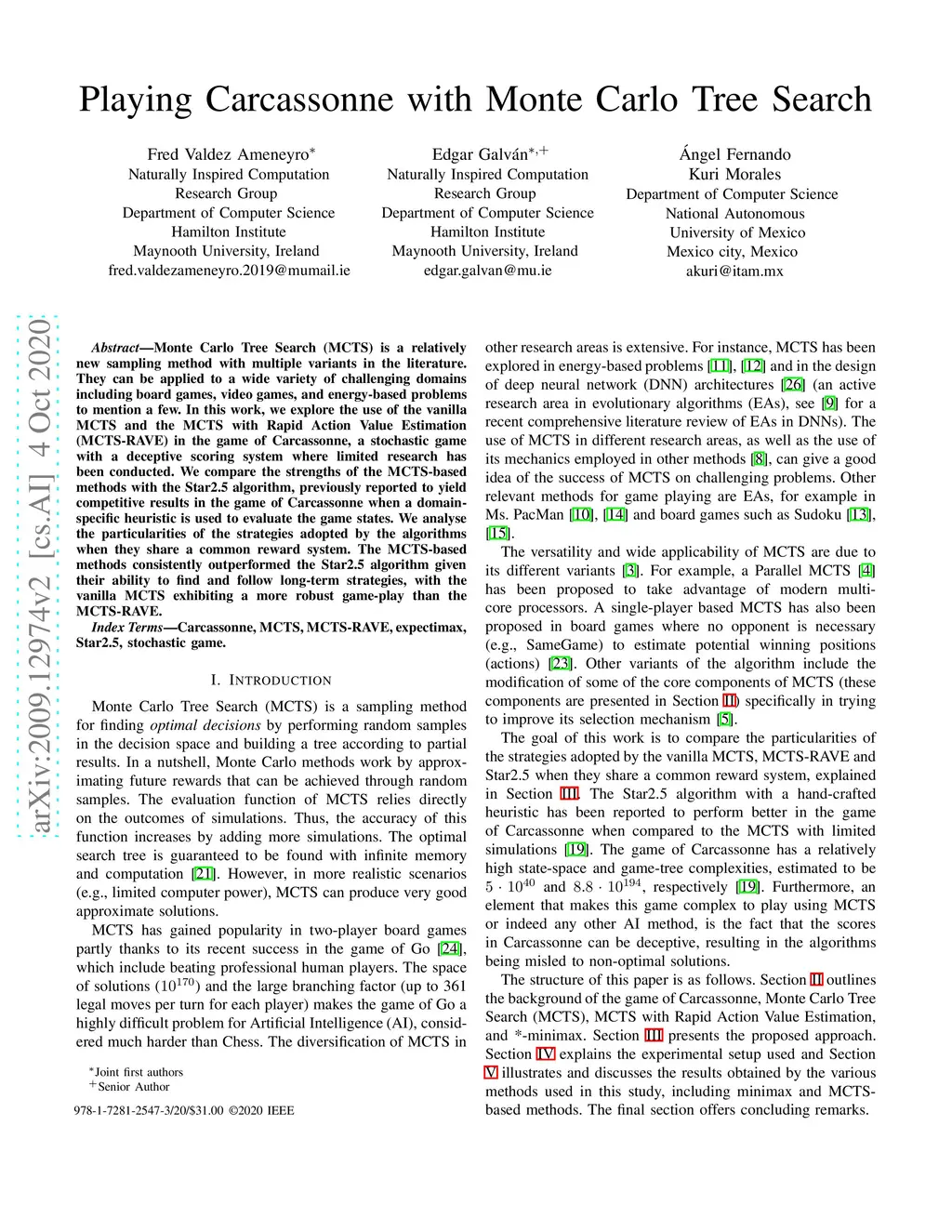 Monte Carlo Tree Search (MCTS) is a relatively new sampling method with multiple variants in the literature. They can be applied to a wide variety of challenging domains including board games, video games, and energy-based problems to mention a few. In this work, we explore the use of the vanilla MCTS and the MCTS with Rapid Action Value Estimation (MCTS-RAVE) in the game of Carcassonne, a stochastic game with a deceptive scoring system where limited research has been conducted. We compare the strengths of the MCTS-based methods with the Star2.5 algorithm, previously reported to yield competitive results in the game of Carcassonne when a domain-specific heuristic is used to evaluate the game states. We analyse the particularities of the strategies adopted by the algorithms when they share a common reward system. The MCTS-based methods consistently outperformed the Star2.5 algorithm given their ability to find and follow long-term strategies, with the vanilla MCTS exhibiting a more robust game-play than the MCTS-RAVE.