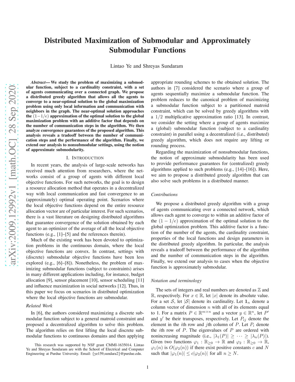 We study the problem of maximizing a submodular function, subject to a cardinality constraint, with a set of agents communicating over a connected graph. We propose a distributed greedy algorithm that allows all the agents to converge to a near-optimal solution to the global maximization problem using only local information and communication with neighbors in the graph. The near-optimal solution approaches the (1-1/e) approximation of the optimal solution to the global maximization problem with an additive factor that depends on the number of communication steps in the algorithm. We then analyze convergence guarantees of the proposed algorithm. This analysis reveals a tradeoff between the number of communication steps and the performance of the algorithm. Finally, we extend our analysis to nonsubmodular settings, using the notion of approximate submodularity.