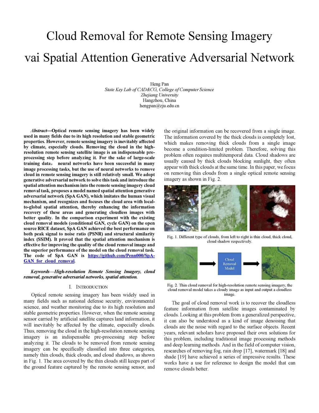Cloud Removal for Remote Sensing Imagery via Spatial Attention