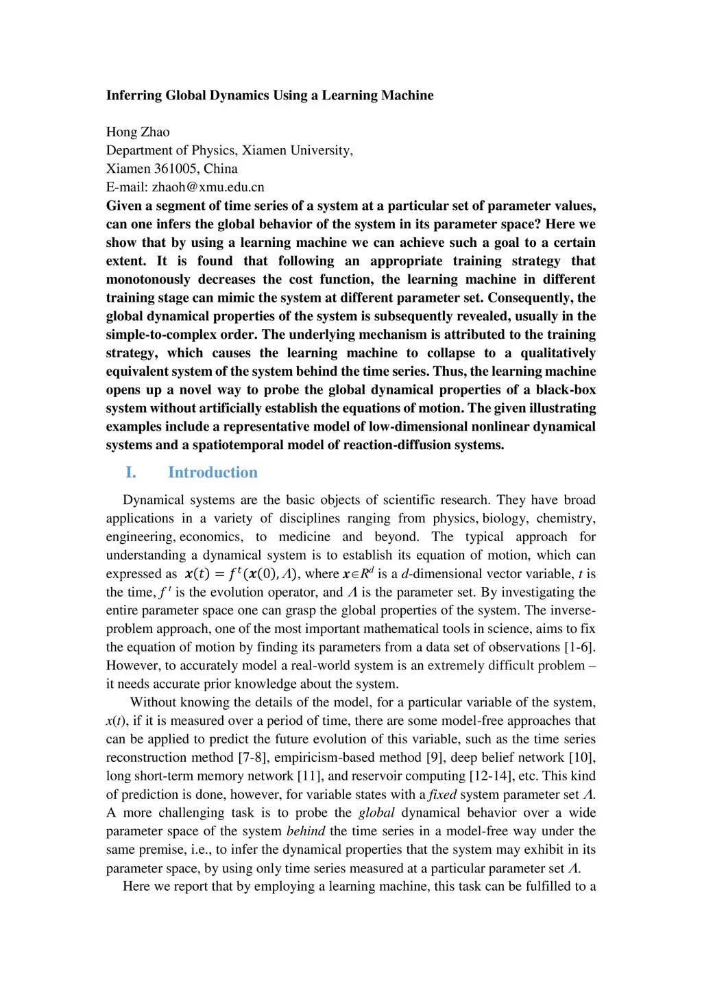 Given a segment of time series of a system at a particular set of parameter values, can one infers the global behavior of the system in its parameter space? Here we show that by using a learning machine we can achieve such a goal to a certain extent. It is found that following an appropriate training strategy that monotonously decreases the cost function, the learning machine in different training stage can mimic the system at different parameter set. Consequently, the global dynamical properties of the system is subsequently revealed, usually in the simple-to-complex order. The underlying mechanism is attributed to the training strategy, which causes the learning machine to collapse to a qualitatively equivalent system of the system behind the time series. Thus, the learning machine opens up a novel way to probe the global dynamical properties of a black-box system without artificially establish the equations of motion. The given illustrating examples include a representative model of low-dimensional nonlinear dynamical systems and a spatiotemporal model of reaction-diffusion systems.