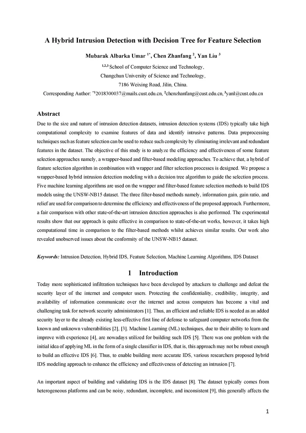 A Hybrid Intrusion Detection with Decision Tree for Feature Selection