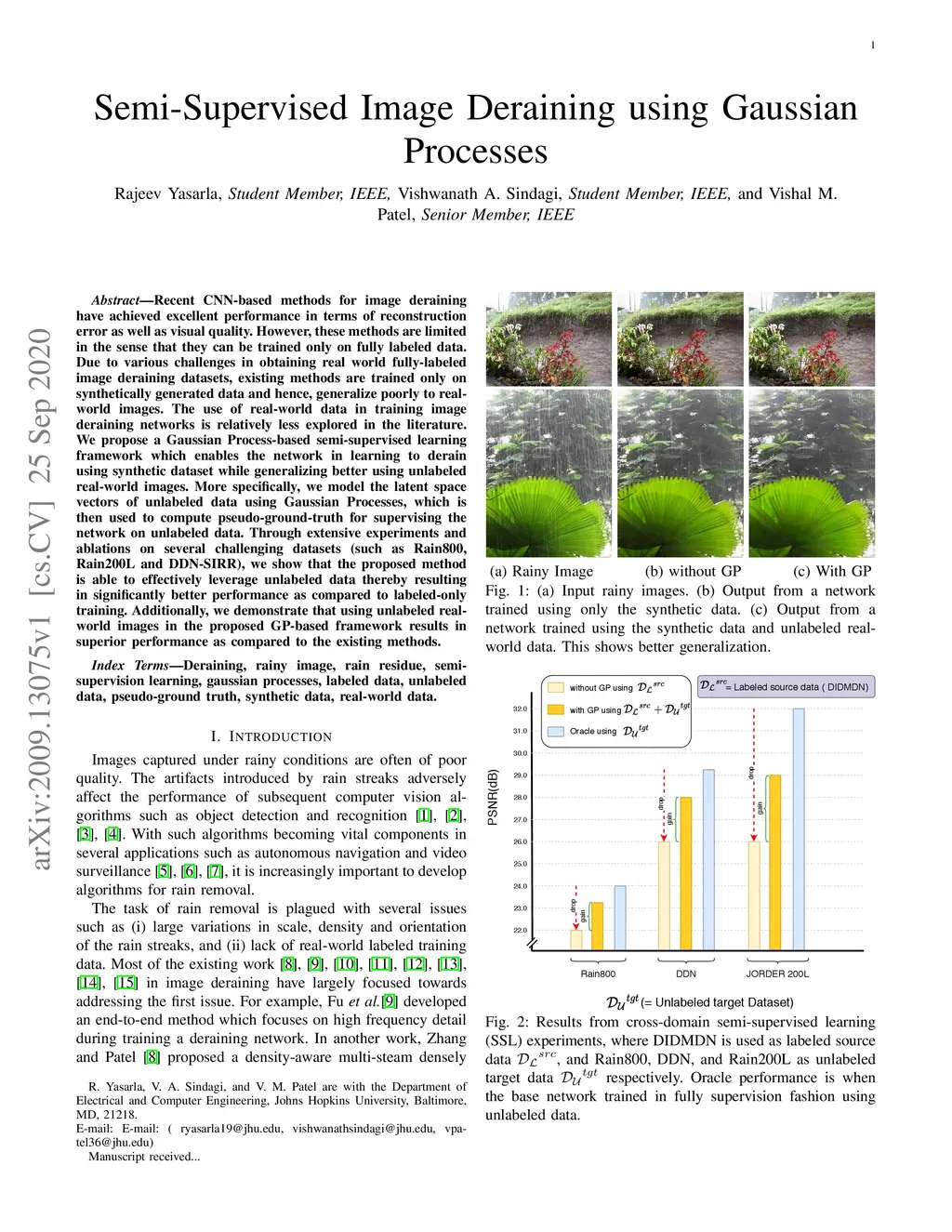 Semi-Supervised Image Deraining using Gaussian Processes