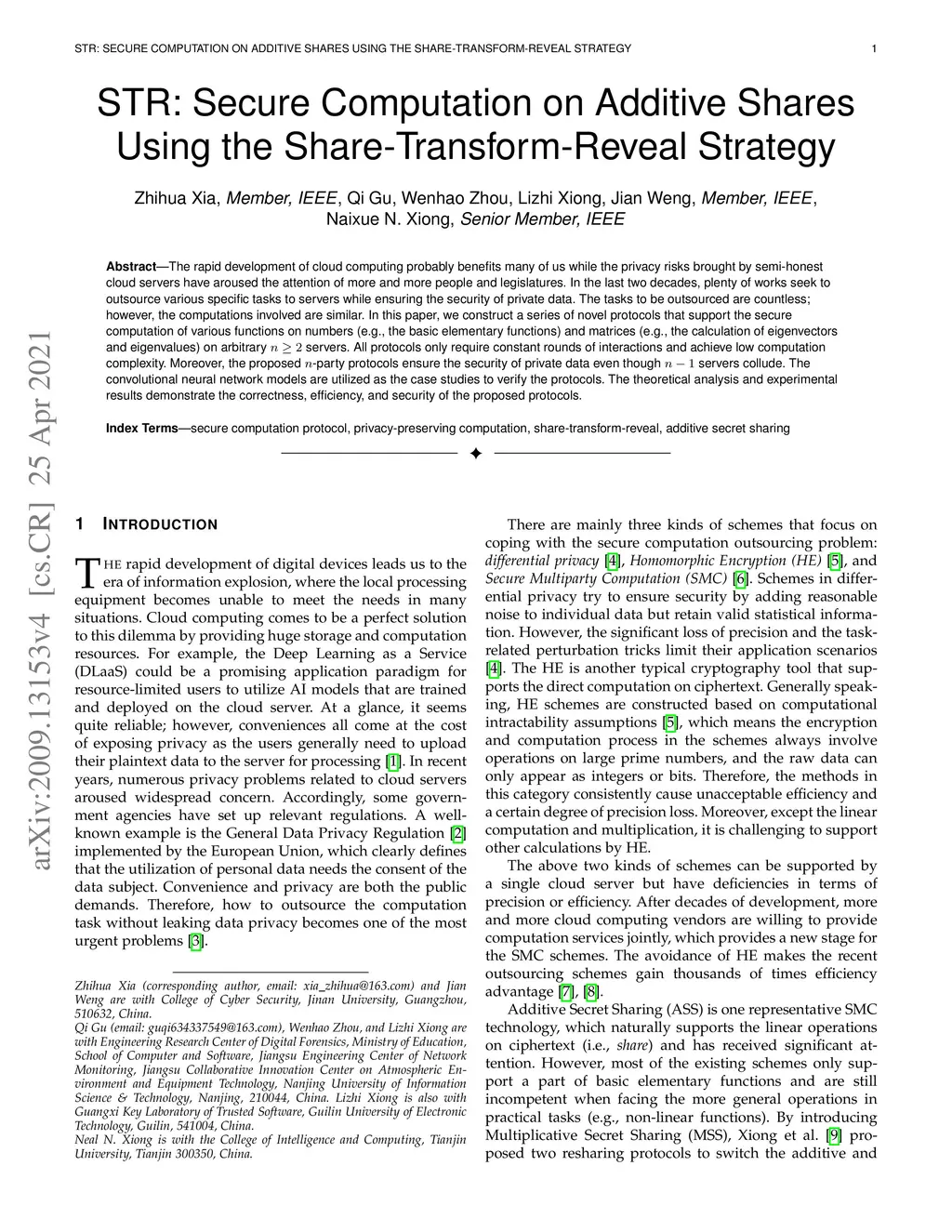 The rapid development of cloud computing has probably benefited each of us. However, the privacy risks brought by untrustworthy cloud servers arise the attention of more and more people and legislatures. In the last two decades, plenty of works seek the way of outsourcing various specific tasks while ensuring the security of private data. The tasks to be outsourced are countless; however, the calculations involved are similar. In this paper, inspired by additive secret sharing and multiplicative secret sharing technologies, we construct a series of novel protocols that support common secure calculations on numbers (e.g., basic elementary functions) or matrices (e.g., solve eigenvectors) in arbitrary servers (). Moreover, the -party protocols ensure the security of the original data even if servers collude. With the help of the client-aided model, the protocols can support the computations on float-pointing numbers. All proposed protocols only require constant rounds of interaction, and we give the detailed security and efficiency analysis. The convolutional neural network is utilized as a case to demonstrate the advantage. We believe that these protocols can provide a new basic tool for actual outsourced tasks.
