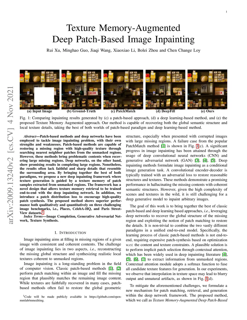 Texture Memory-Augmented Deep Patch-Based Image Inpainting