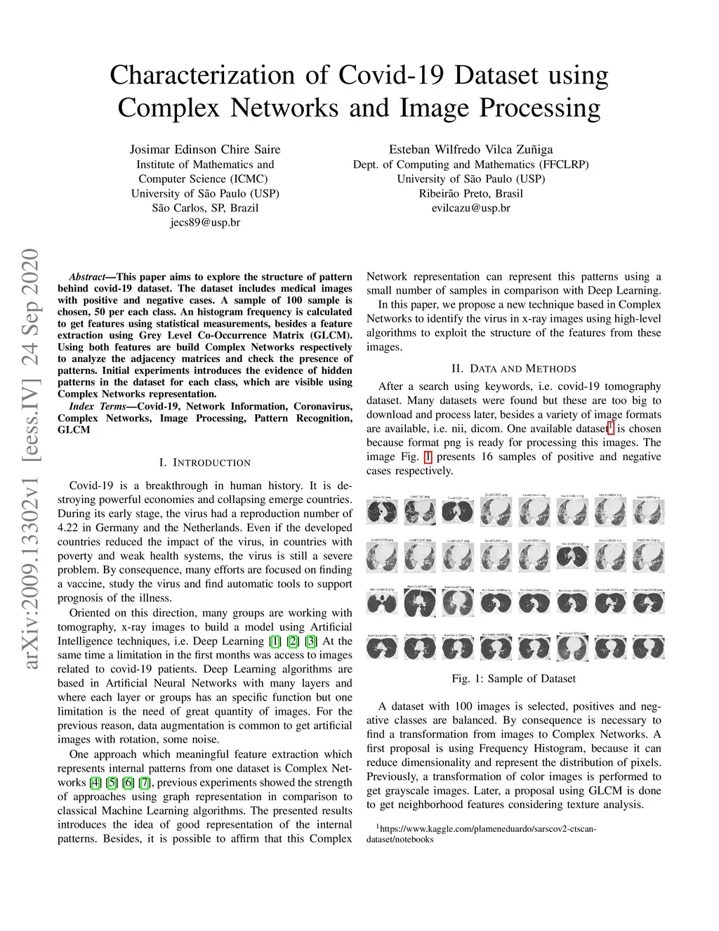 Characterization of Covid-19 Dataset using Complex Networks and Image