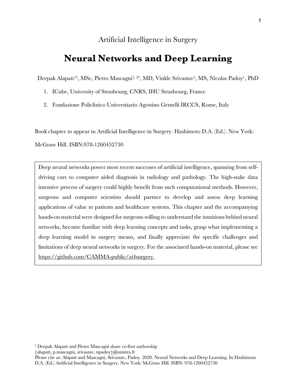 Artificial Intelligence in Surgery: Neural Networks and Deep Learning