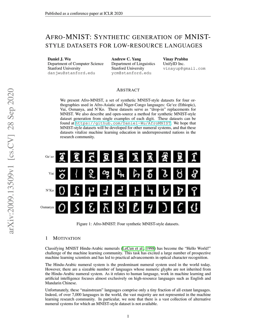 Afro-MNIST: Synthetic generation of MNIST-style datasets for