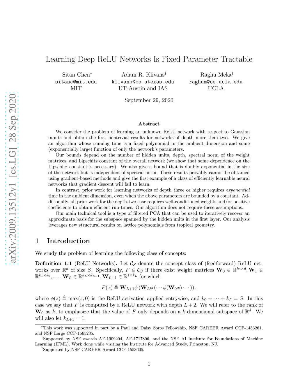 Learning Deep ReLU Networks Is Fixed-Parameter Tractable