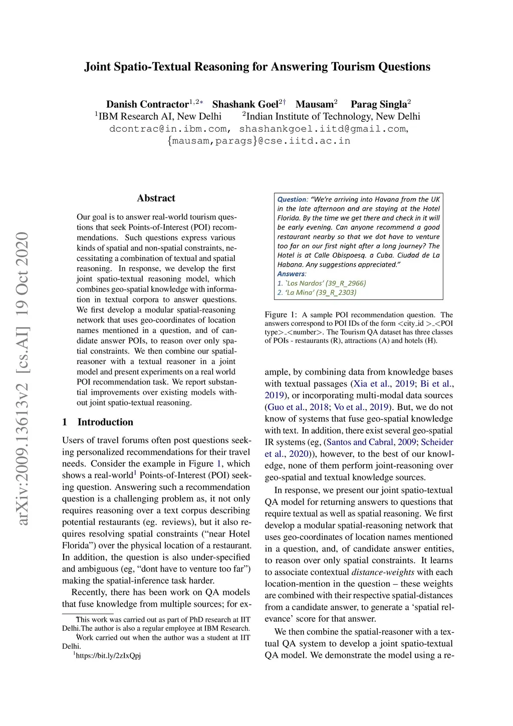 Joint Spatio-Textual Reasoning for Answering Tourism Questions