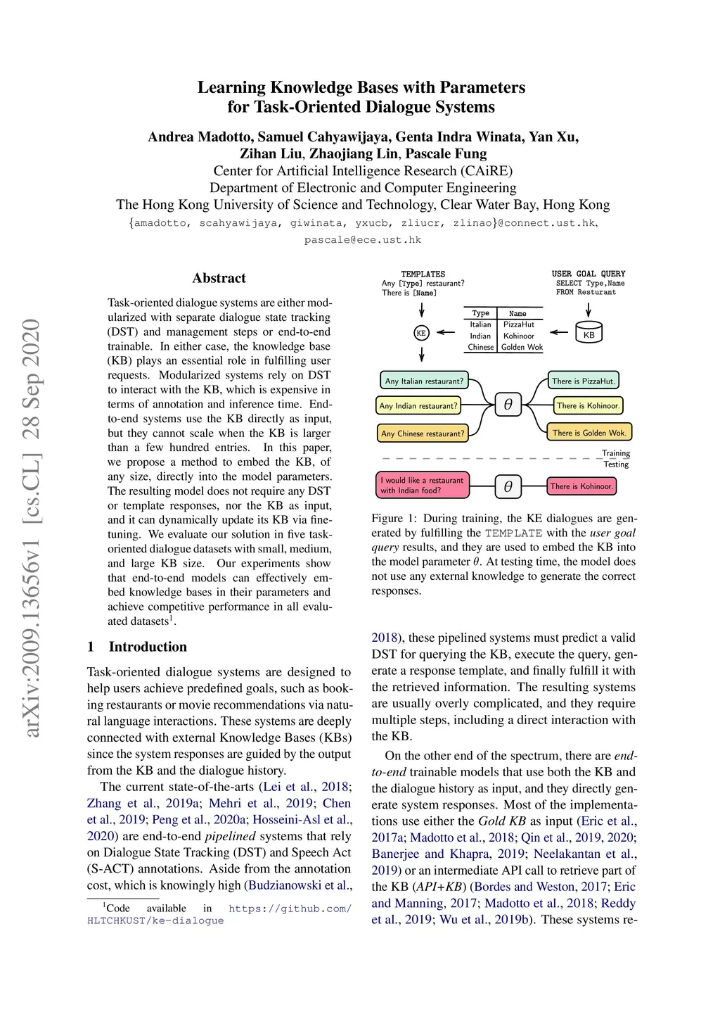 Learning Knowledge Bases with Parameters for Task-Oriented Dialogue