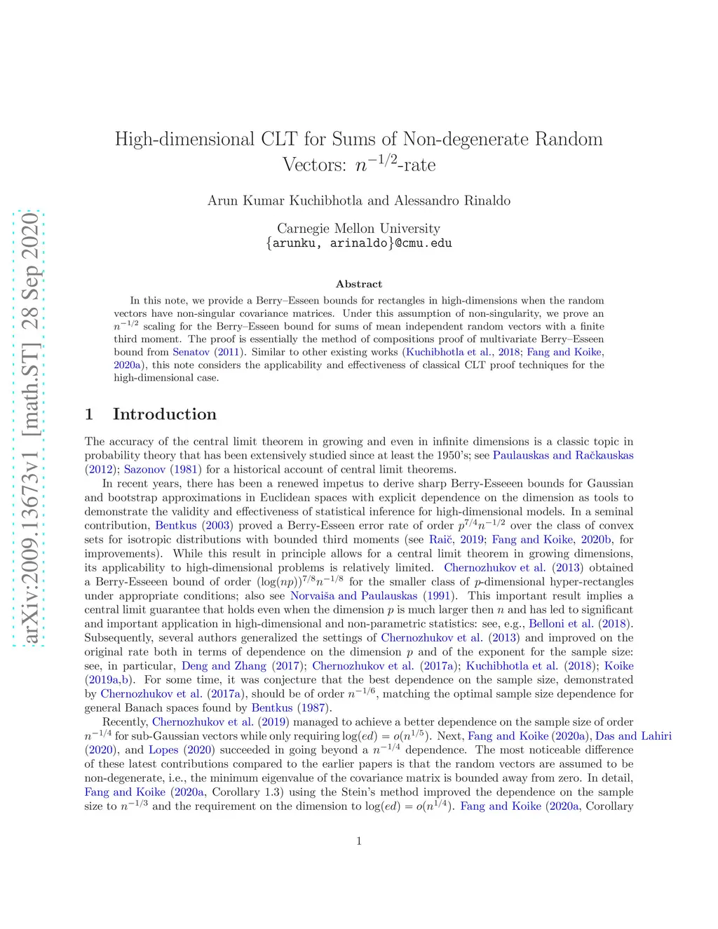 In this note, we provide a Berry--Esseen bounds for rectangles in high-dimensions when the random vectors have non-singular covariance matrices. Under this assumption of non-singularity, we prove an scaling for the Berry--Esseen bound for sums of mean independent random vectors with a finite third moment. The proof is essentially the method of compositions proof of multivariate Berry--Esseen bound from Senatov (2011). Similar to other existing works (Kuchibhotla et al. 2018, Fang and Koike 2020a), this note considers the applicability and effectiveness of classical CLT proof techniques for the high-dimensional case.
