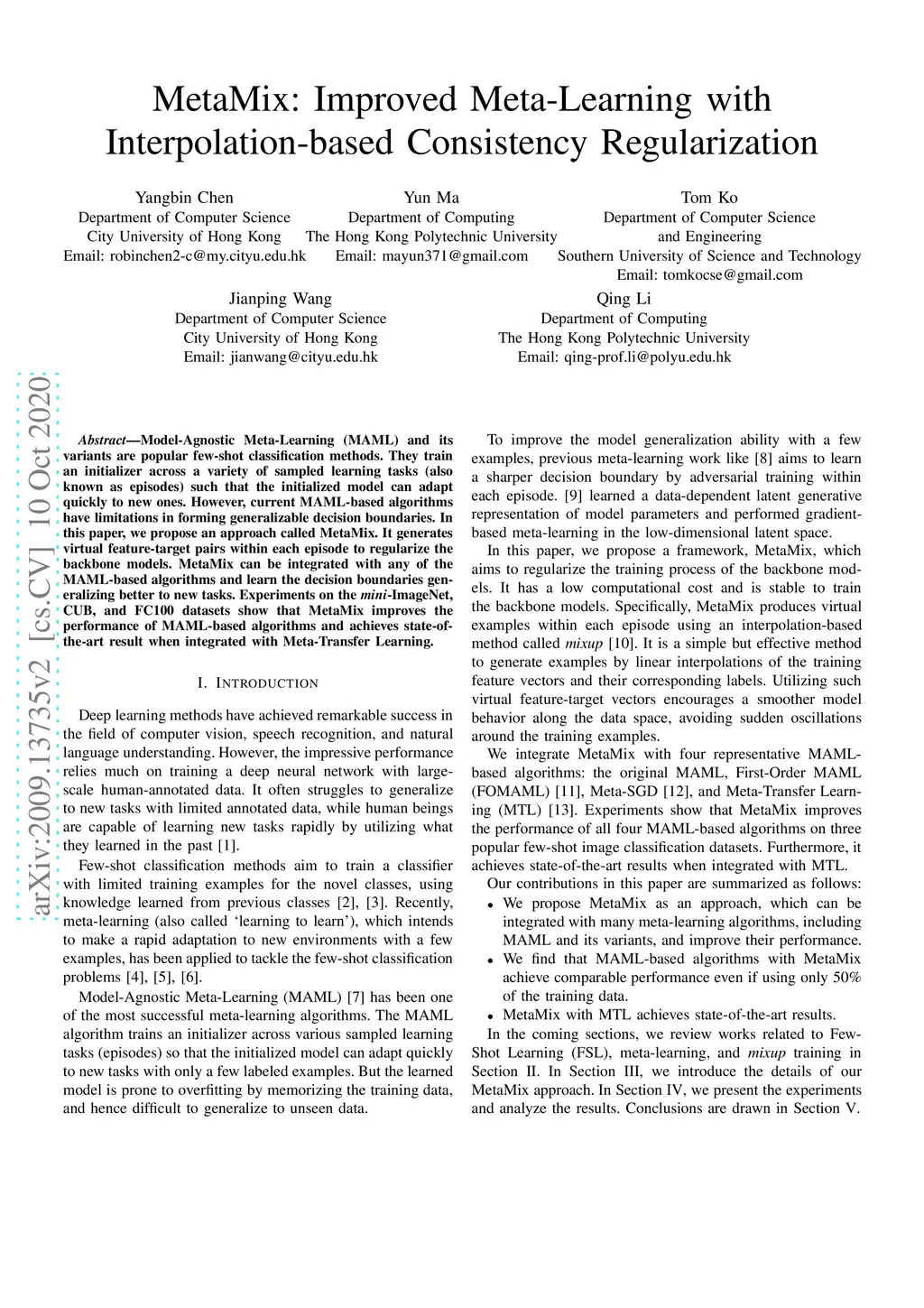 MetaMix: Improved Meta-Learning with Interpolation-based Consistency