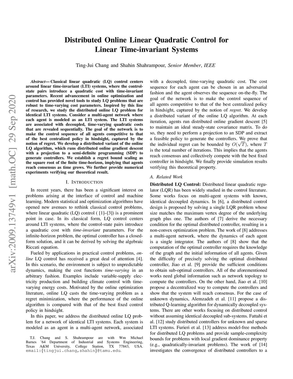 Distributed Online Linear Quadratic Control for Linear Time-invariant