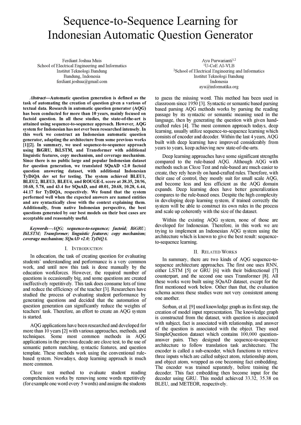 Sequence-to-Sequence Learning for Indonesian Automatic Question