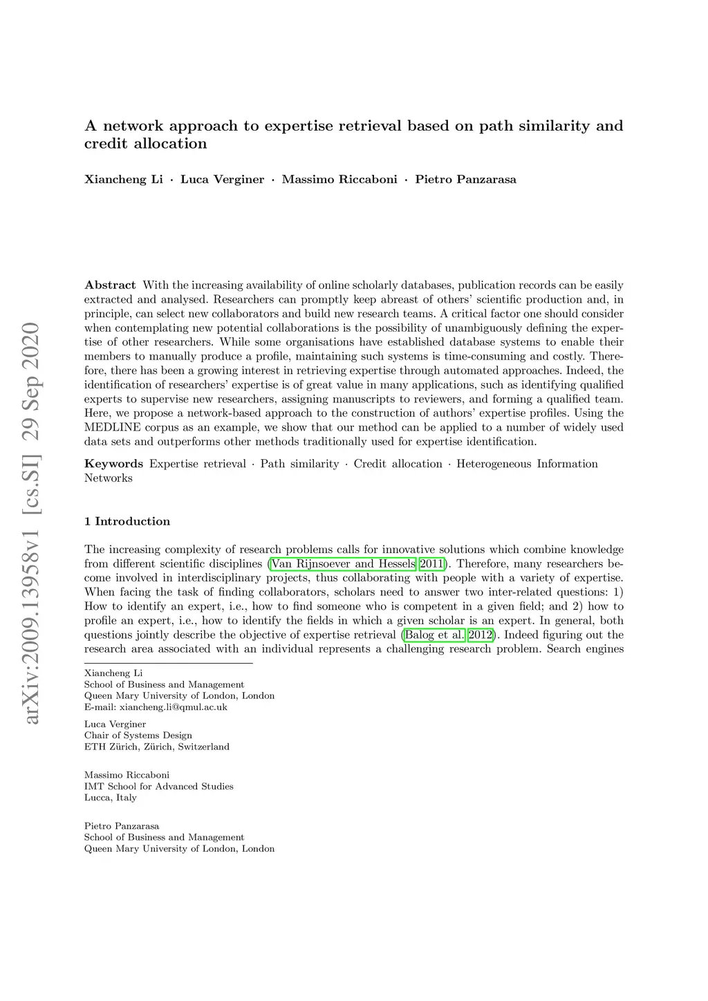 A network approach to expertise retrieval based on path similarity and