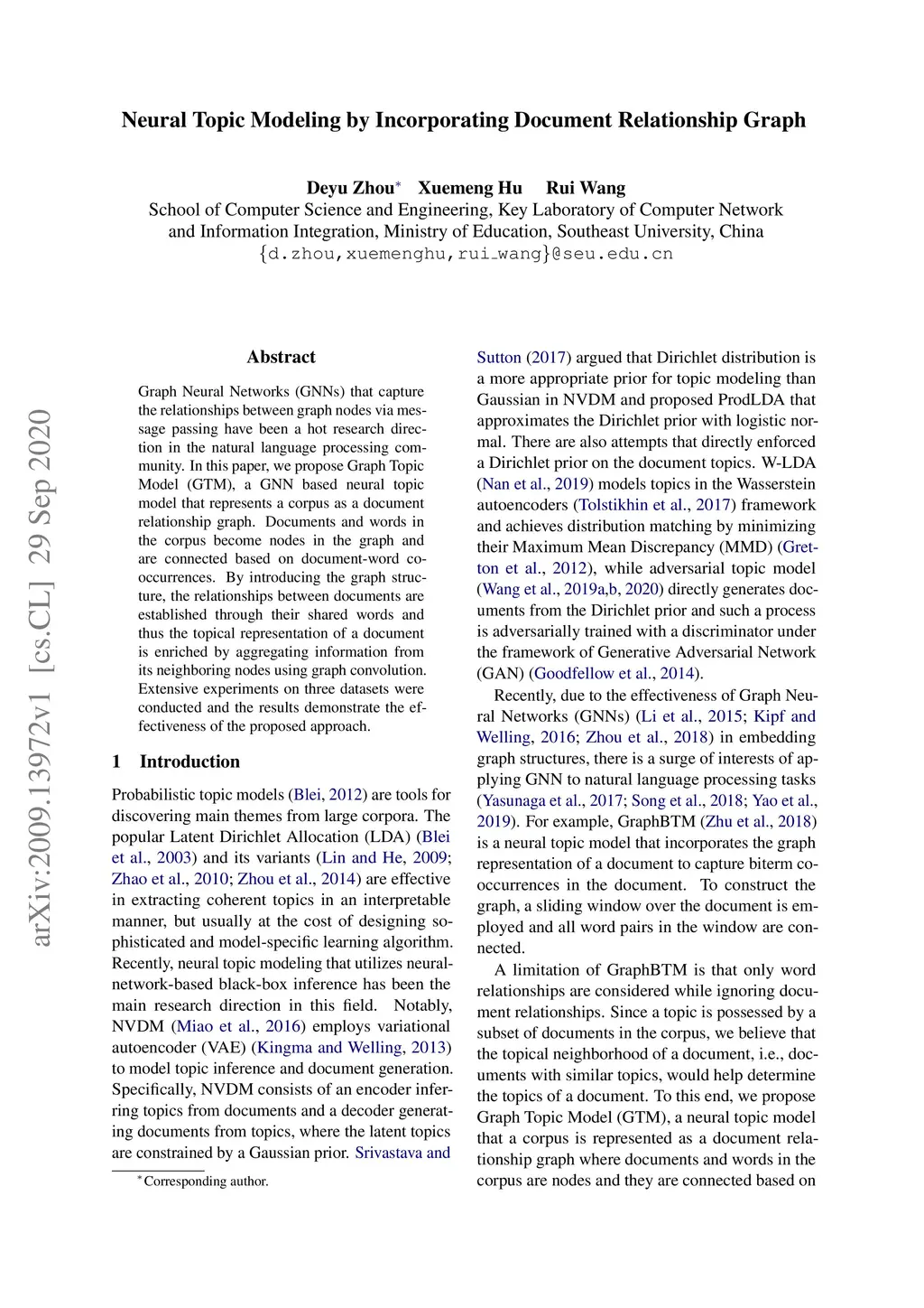 Neural Topic Modeling by Incorporating Document Relationship Graph