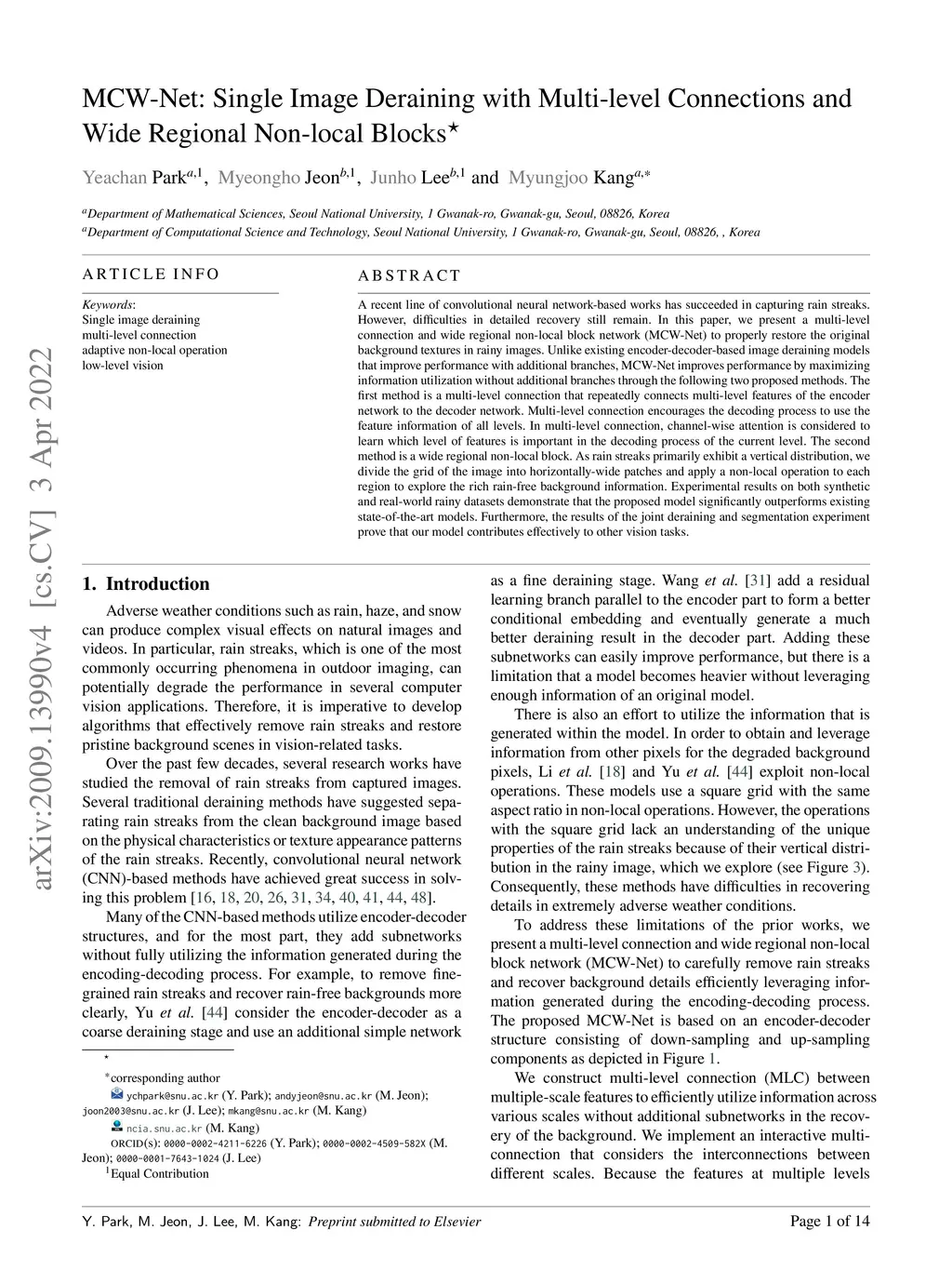 MCW-Net: Single Image Deraining with Multi-level Connections and Wide