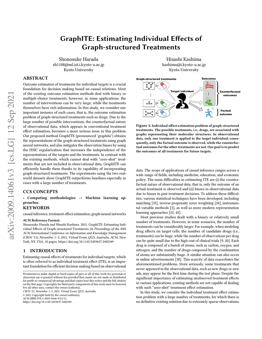 Outcome estimation of treatments for target individuals is an important foundation for decision making based on causal relations. Most existing outcome estimation methods deal with binary or multiple-choice treatments; however, in some applications, the number of treatments can be significantly large, while the treatments themselves have rich information. In this study, we considered one important instance of such cases: the outcome estimation problem of graph-structured treatments such as drugs. Owing to the large number of possible treatments, the counterfactual nature of observational data that appears in conventional treatment effect estimation becomes more of a concern for this problem. Our proposed method, GraphITE (pronounced "graphite") learns the representations of graph-structured treatments using graph neural networks while mitigating observation biases using Hilbert-Schmidt Independence Criterion regularization, which increases the independence of the representations of the targets and treatments. Experiments on two real-world datasets show that GraphITE outperforms baselines, especially in cases with a large number of treatments.