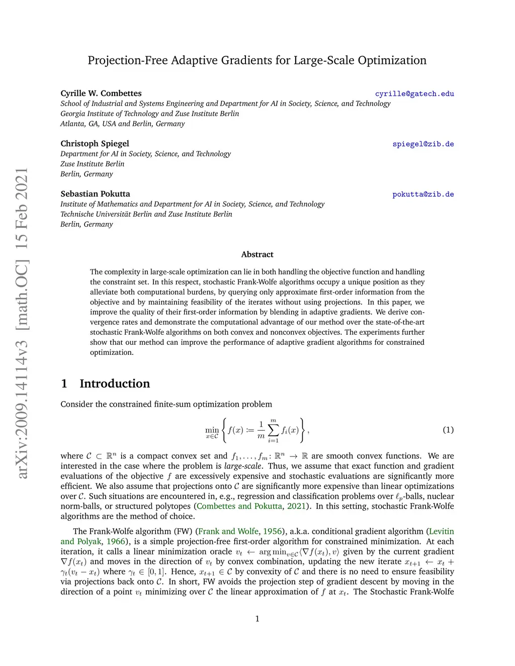Projection-Free Adaptive Gradients for Large-Scale Optimization