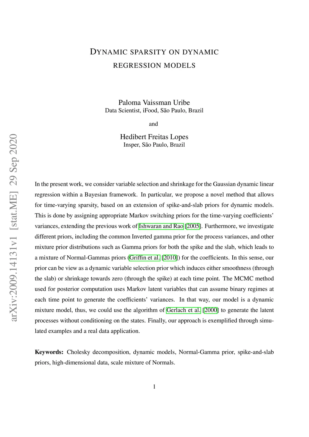 Dynamic sparsity on dynamic regression models