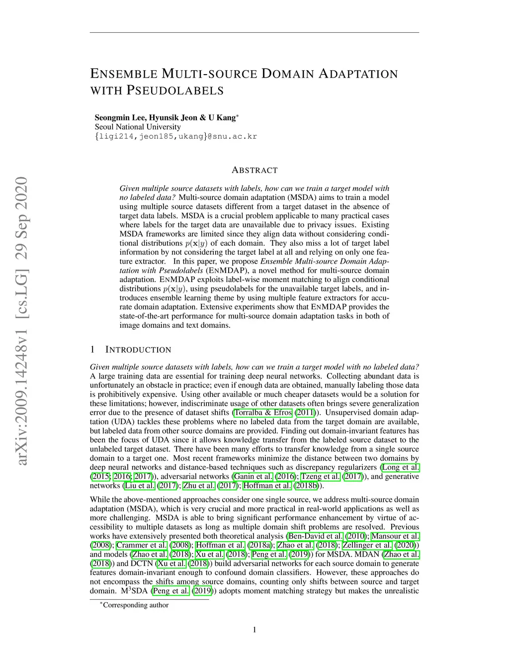 Ensemble Multi-Source Domain Adaptation with Pseudolabels
