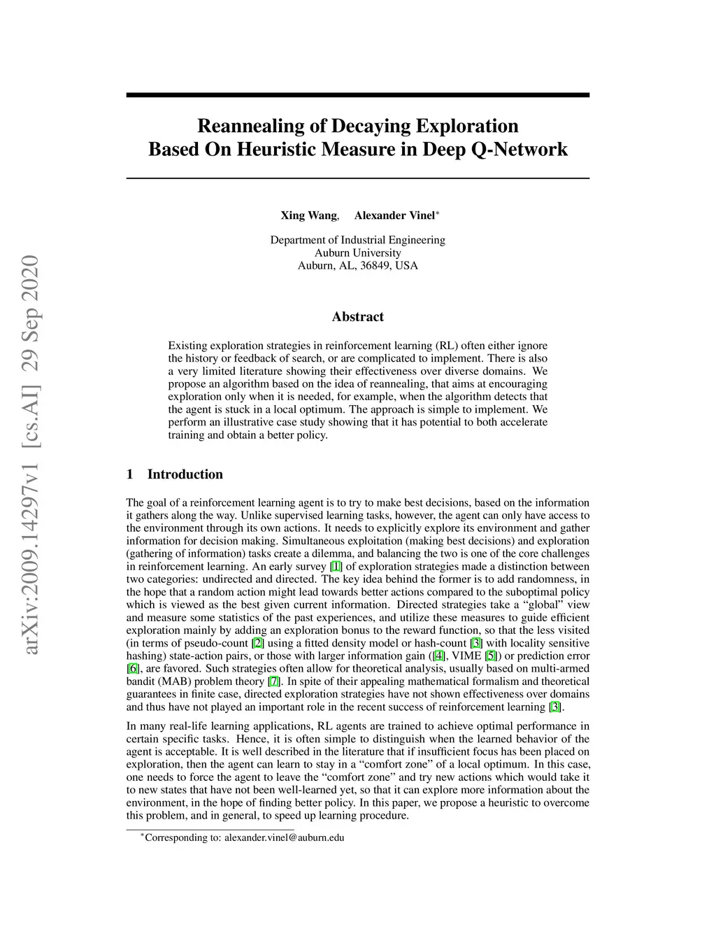 Reannealing of Decaying Exploration Based On Heuristic Measure in Deep