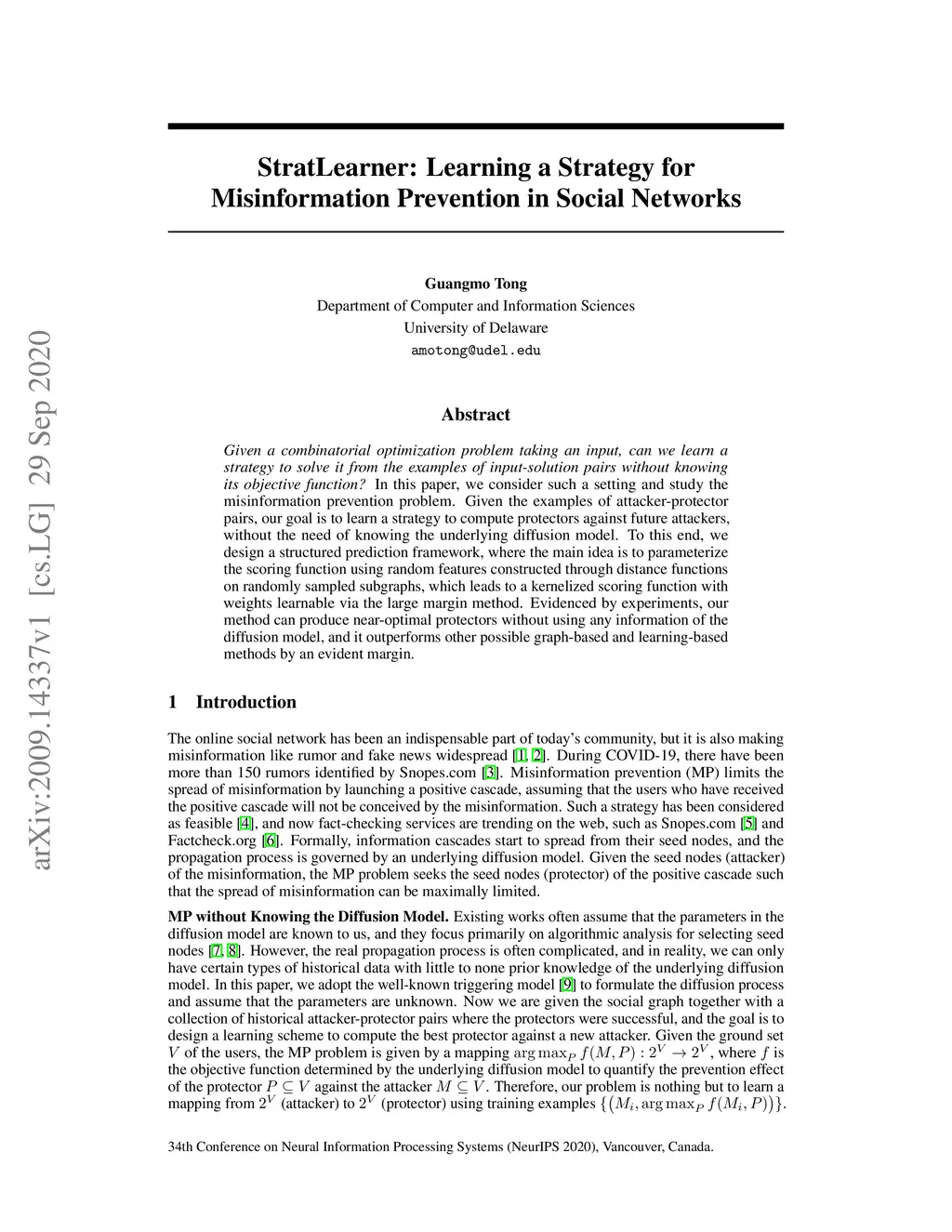 StratLearner: Learning a Strategy for Misinformation Prevention in