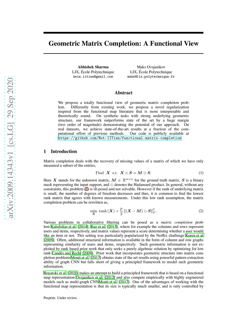 Geometric Matrix Completion: A Functional View