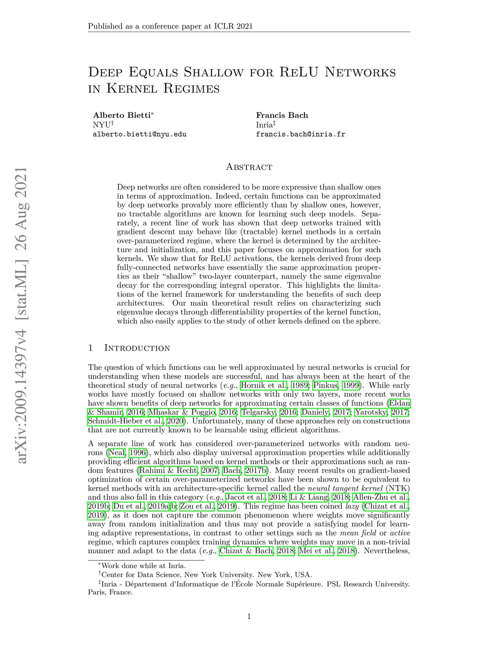 Deep Equals Shallow for ReLU Networks in Kernel Regimes