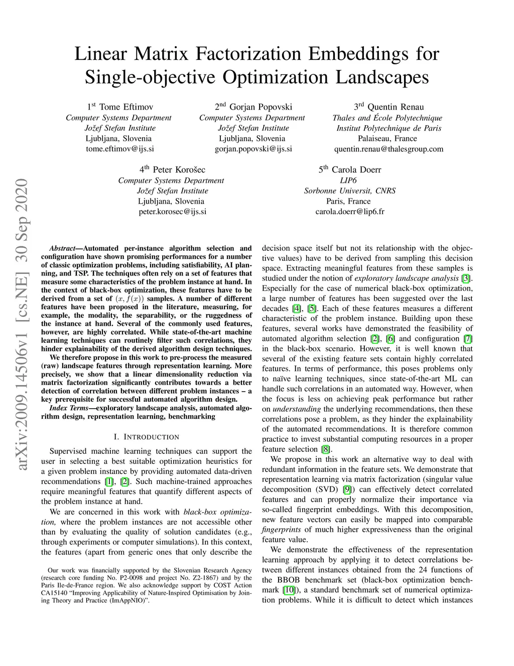 Linear Matrix Factorization Embeddings for Single-objective Optimization