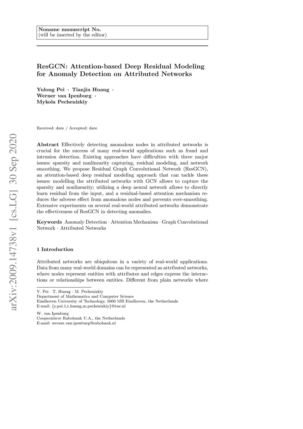 ResGCN: Attention-based Deep Residual Modeling for Anomaly Detection on