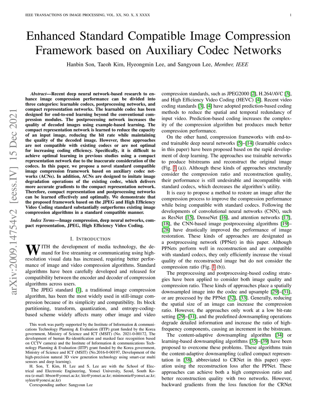 To enhance image compression performance, recent deep neural network-based research can be divided into three categories: a learnable codec, a postprocessing network, and a compact representation network. The learnable codec has been designed for an end-to-end learning beyond the conventional compression modules. The postprocessing network increases the quality of decoded images using an example-based learning. The compact representation network is learned to reduce the capacity of an input image to reduce the bitrate while keeping the quality of the decoded image. However, these approaches are not compatible with the existing codecs or not optimal to increase the coding efficiency. Specifically, it is difficult to achieve optimal learning in the previous studies using the compact representation network, due to the inaccurate consideration of the codecs. In this paper, we propose a novel standard compatible image compression framework based on Auxiliary Codec Networks (ACNs). ACNs are designed to imitate image degradation operations of the existing codec, which delivers more accurate gradients to the compact representation network. Therefore, the compact representation and the postprocessing networks can be learned effectively and optimally. We demonstrate that our proposed framework based on JPEG and High Efficiency Video Coding (HEVC) standard substantially outperforms existing image compression algorithms in a standard compatible manner.
