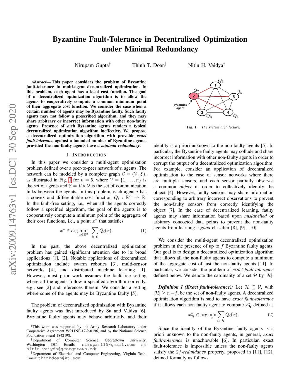 This paper considers the problem of Byzantine fault-tolerance in multi-agent decentralized optimization. In this problem, each agent has a local cost function. The goal of a decentralized optimization algorithm is to allow the agents to cooperatively compute a common minimum point of their aggregate cost function. We consider the case when a certain number of agents may be Byzantine faulty. Such faulty agents may not follow a prescribed algorithm, and they may share arbitrary or incorrect information with other non-faulty agents. Presence of such Byzantine agents renders a typical decentralized optimization algorithm ineffective. We propose a decentralized optimization algorithm with provable exact fault-tolerance against a bounded number of Byzantine agents, provided the non-faulty agents have a minimal redundancy.