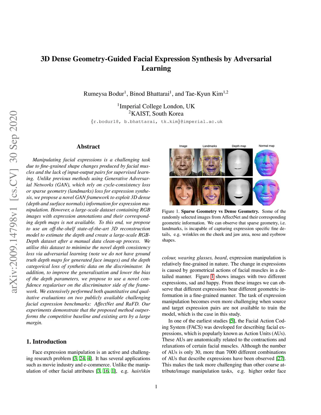 3D Dense Geometry-Guided Facial Expression Synthesis by Adversarial