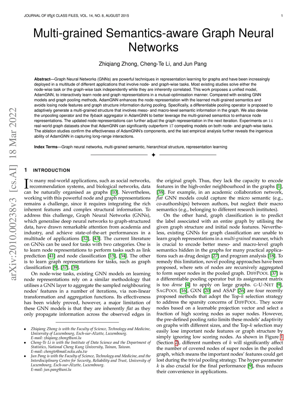 Graph Neural Networks (GNNs) are powerful techniques in representation learning for graphs and have been increasingly deployed in a multitude of different applications that involve node- and graph-wise tasks. Most existing studies solve either the node-wise task or the graph-wise task independently while they are inherently correlated. This work proposes a unified model, AdamGNN, to interactively learn node and graph representations in a mutual-optimisation manner. Compared with existing GNN models and graph pooling methods, AdamGNN enhances the node representation with the learned multi-grained semantics and avoids losing node features and graph structure information during pooling. Specifically, a differentiable pooling operator is proposed to adaptively generate a multi-grained structure that involves meso- and macro-level semantic information in the graph. We also devise the unpooling operator and the flyback aggregator in AdamGNN to better leverage the multi-grained semantics to enhance node representations. The updated node representations can further adjust the graph representation in the next iteration. Experiments on 14 real-world graph datasets show that AdamGNN can significantly outperform 17 competing models on both node- and graph-wise tasks. The ablation studies confirm the effectiveness of AdamGNN's components, and the last empirical analysis further reveals the ingenious ability of AdamGNN in capturing long-range interactions.