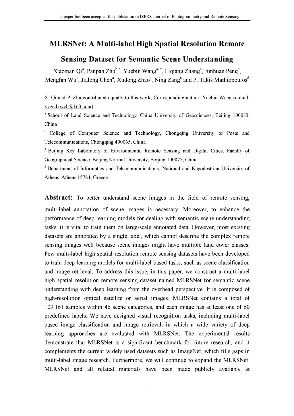 MLRSNet: A Multi-label High Spatial Resolution Remote Sensing Dataset