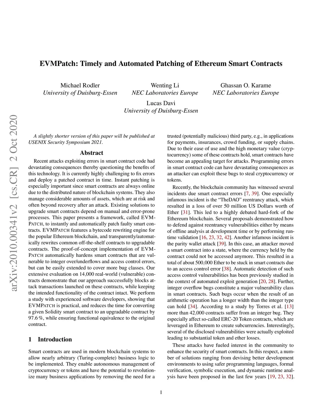 EVMPatch: Timely and Automated Patching of Ethereum Smart Contracts
