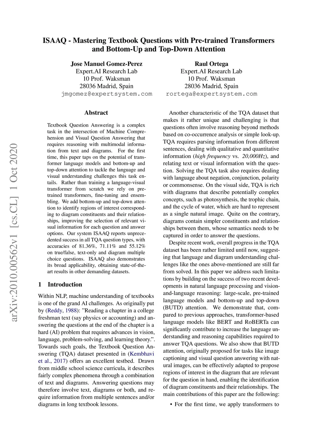 ISAAQ -- Mastering Textbook Questions with Pre-trained Transformers and