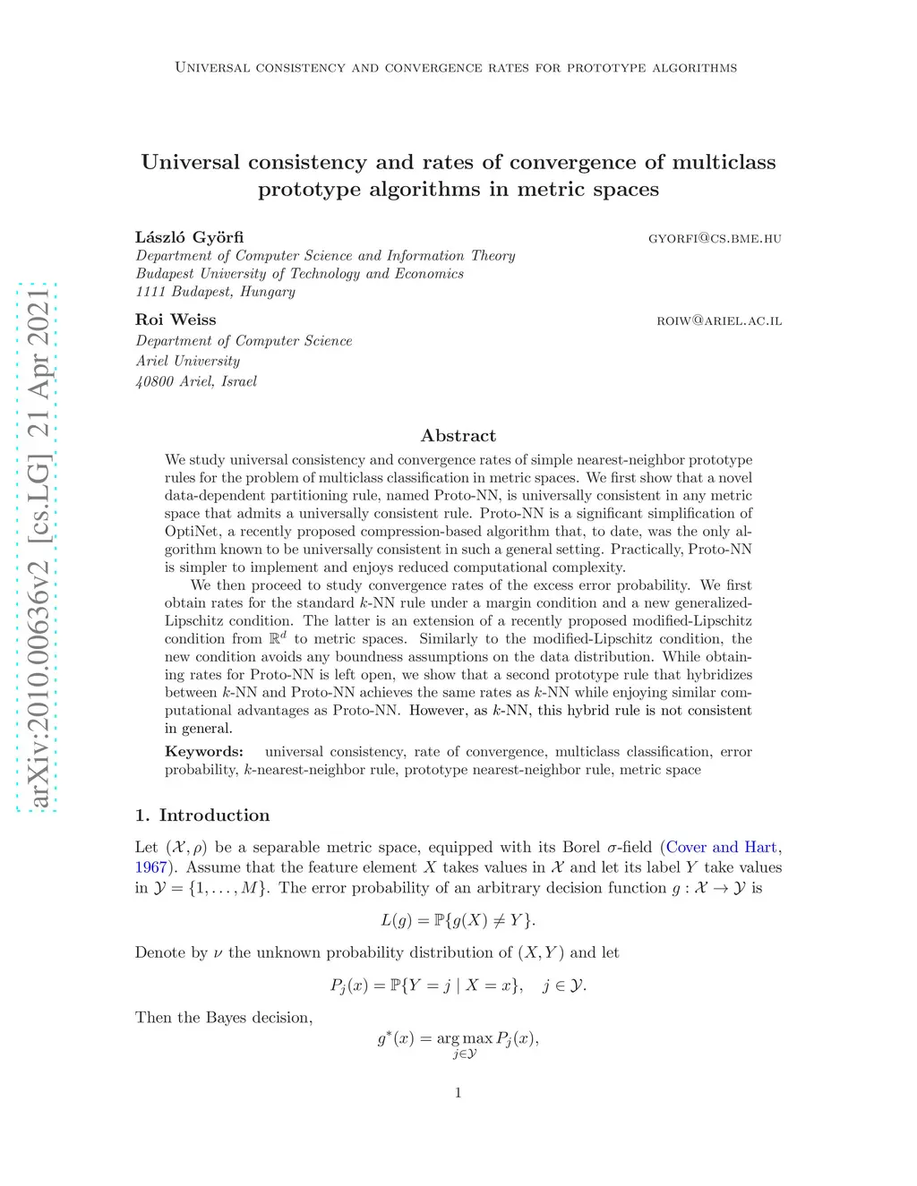 We study universal consistency and convergence rates of simple nearest-neighbor prototype rules for the problem of multiclass classification in metric paces. We first show that a novel data-dependent partitioning rule, named Proto-NN, is universally consistent in any metric space that admits a universally consistent rule. Proto-NN is a significant simplification of OptiNet, a recently proposed compression-based algorithm that, to date, was the only algorithm known to be universally consistent in such a general setting. Practically, Proto-NN is simpler to implement and enjoys reduced computational complexity. We then proceed to study convergence rates of the excess error probability. We first obtain rates for the standard -NN rule under a margin condition and a new generalized-Lipschitz condition. The latter is an extension of a recently proposed modified-Lipschitz condition from to metric spaces. Similarly to the modified-Lipschitz condition, the new condition avoids any boundness assumptions on the data distribution. While obtaining rates for Proto-NN is left open, we show that a second prototype rule that hybridizes between -NN and Proto-NN achieves the same rates as -NN while enjoying similar computational advantages as Proto-NN. However, as -NN, this hybrid rule is not consistent in general.