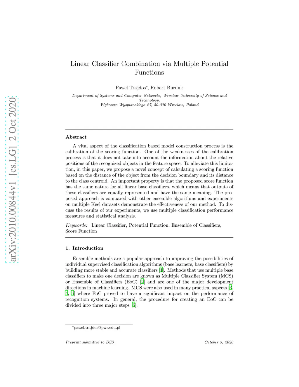 Linear Classifier Combination via Multiple Potential Functions
