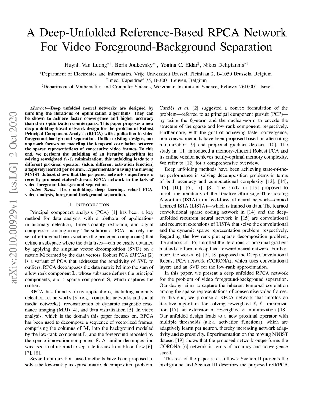 Deep unfolded neural networks are designed by unrolling the iterations of optimization algorithms. They can be shown to achieve faster convergence and higher accuracy than their optimization counterparts. This paper proposes a new deep-unfolding-based network design for the problem of Robust Principal Component Analysis (RPCA) with application to video foreground-background separation. Unlike existing designs, our approach focuses on modeling the temporal correlation between the sparse representations of consecutive video frames. To this end, we perform the unfolding of an iterative algorithm for solving reweighted - minimization; this unfolding leads to a different proximal operator (a.k.a. different activation function) adaptively learned per neuron. Experimentation using the moving MNIST dataset shows that the proposed network outperforms a recently proposed state-of-the-art RPCA network in the task of video foreground-background separation.