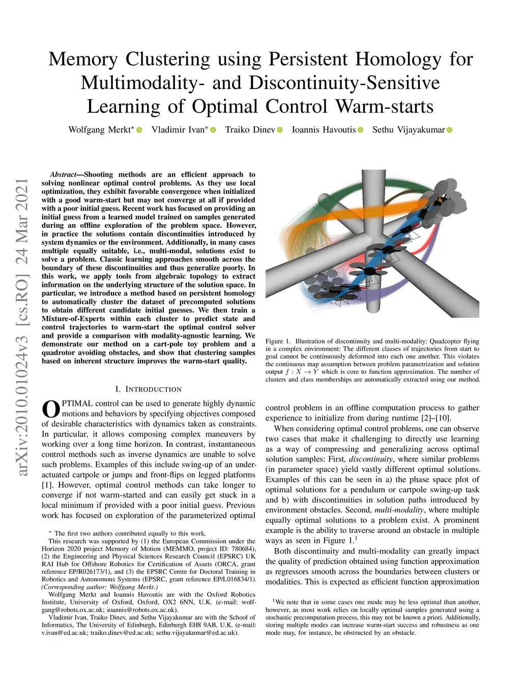 Shooting methods are an efficient approach to solving nonlinear optimal control problems. As they use local optimization, they exhibit favorable convergence when initialized with a good warm-start but may not converge at all if provided with a poor initial guess. Recent work has focused on providing an initial guess from a learned model trained on samples generated during an offline exploration of the problem space. However, in practice the solutions contain discontinuities introduced by system dynamics or the environment. Additionally, in many cases multiple equally suitable, i.e., multi-modal, solutions exist to solve a problem. Classic learning approaches smooth across the boundary of these discontinuities and thus generalize poorly. In this work, we apply tools from algebraic topology to extract information on the underlying structure of the solution space. In particular, we introduce a method based on persistent homology to automatically cluster the dataset of precomputed solutions to obtain different candidate initial guesses. We then train a Mixture-of-Experts within each cluster to predict state and control trajectories to warm-start the optimal control solver and provide a comparison with modality-agnostic learning. We demonstrate our method on a cart-pole toy problem and a quadrotor avoiding obstacles, and show that clustering samples based on inherent structure improves the warm-start quality.