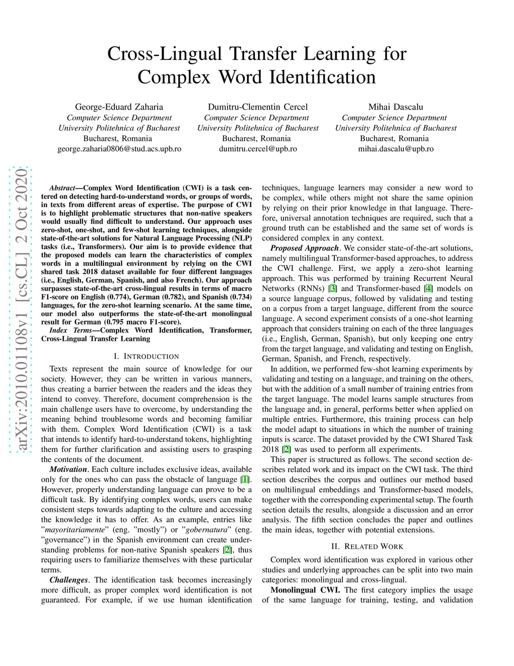 Cross-Lingual Transfer Learning for Complex Word Identification