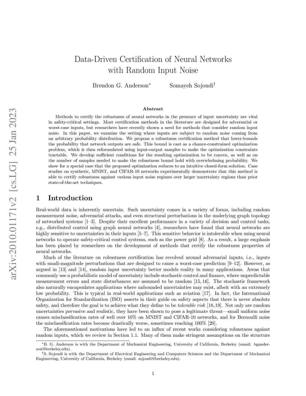 Data-Driven Certification of Neural Networks with Random Input Noise