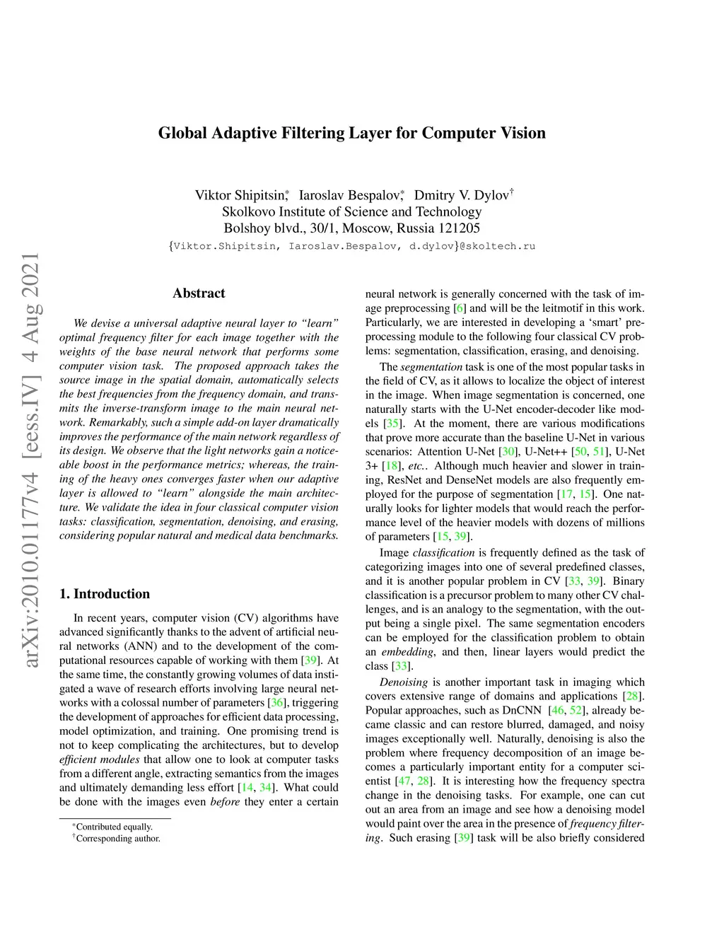 We devise a universal adaptive neural layer to "learn" optimal frequency filter for each image together with the weights of the base neural network that performs some computer vision task. The proposed approach takes the source image in the spatial domain, automatically selects the best frequencies from the frequency domain, and transmits the inverse-transform image to the main neural network. Remarkably, such a simple add-on layer dramatically improves the performance of the main network regardless of its design. We observe that the light networks gain a noticeable boost in the performance metrics; whereas, the training of the heavy ones converges faster when our adaptive layer is allowed to "learn" alongside the main architecture. We validate the idea in four classical computer vision tasks: classification, segmentation, denoising, and erasing, considering popular natural and medical data benchmarks.