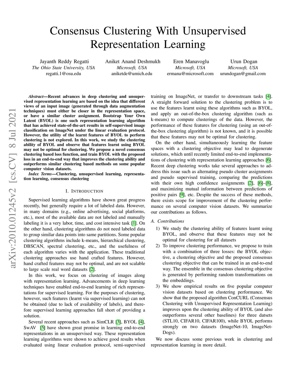 Consensus Clustering With Unsupervised Representation Learning