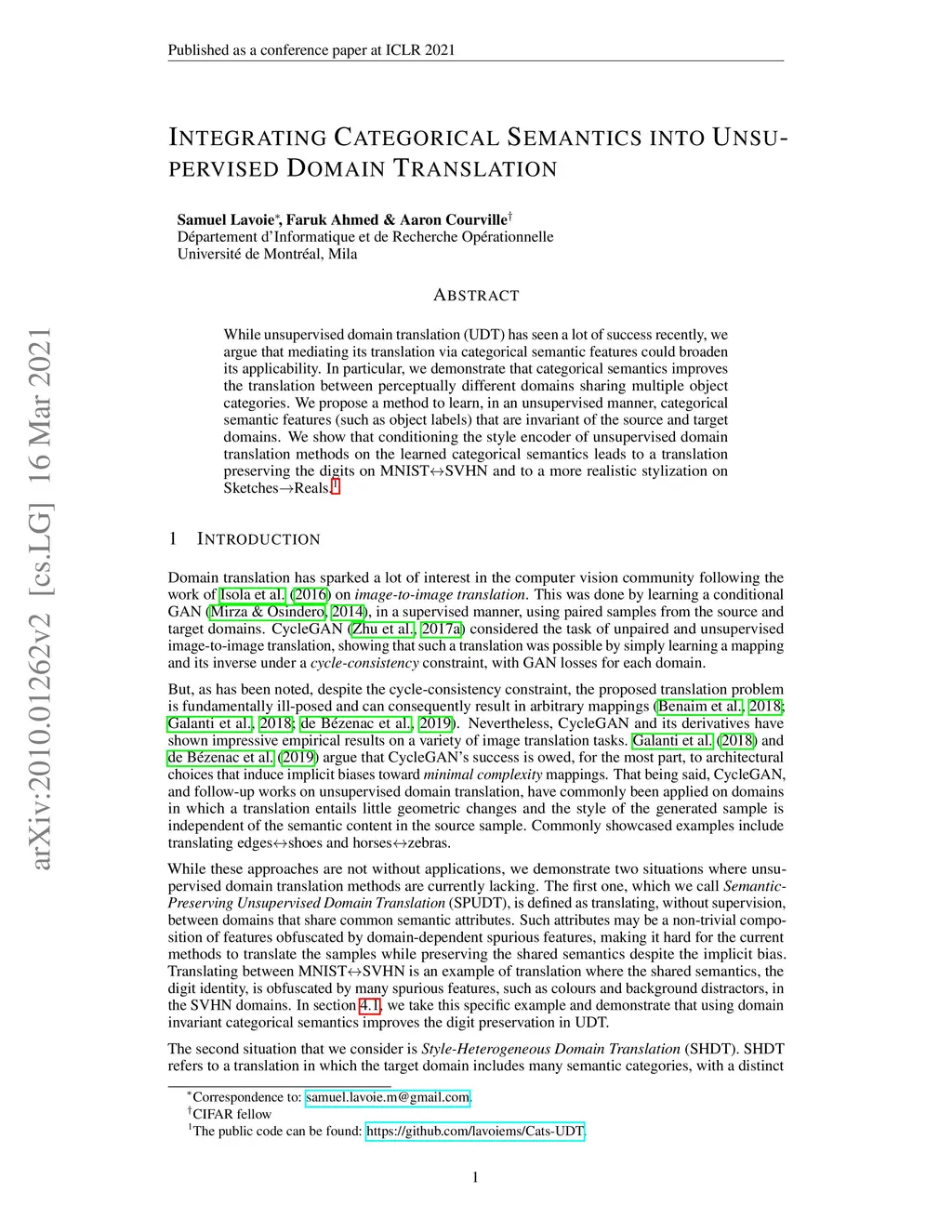 Integrating Categorical Semantics into Unsupervised Domain Translation
