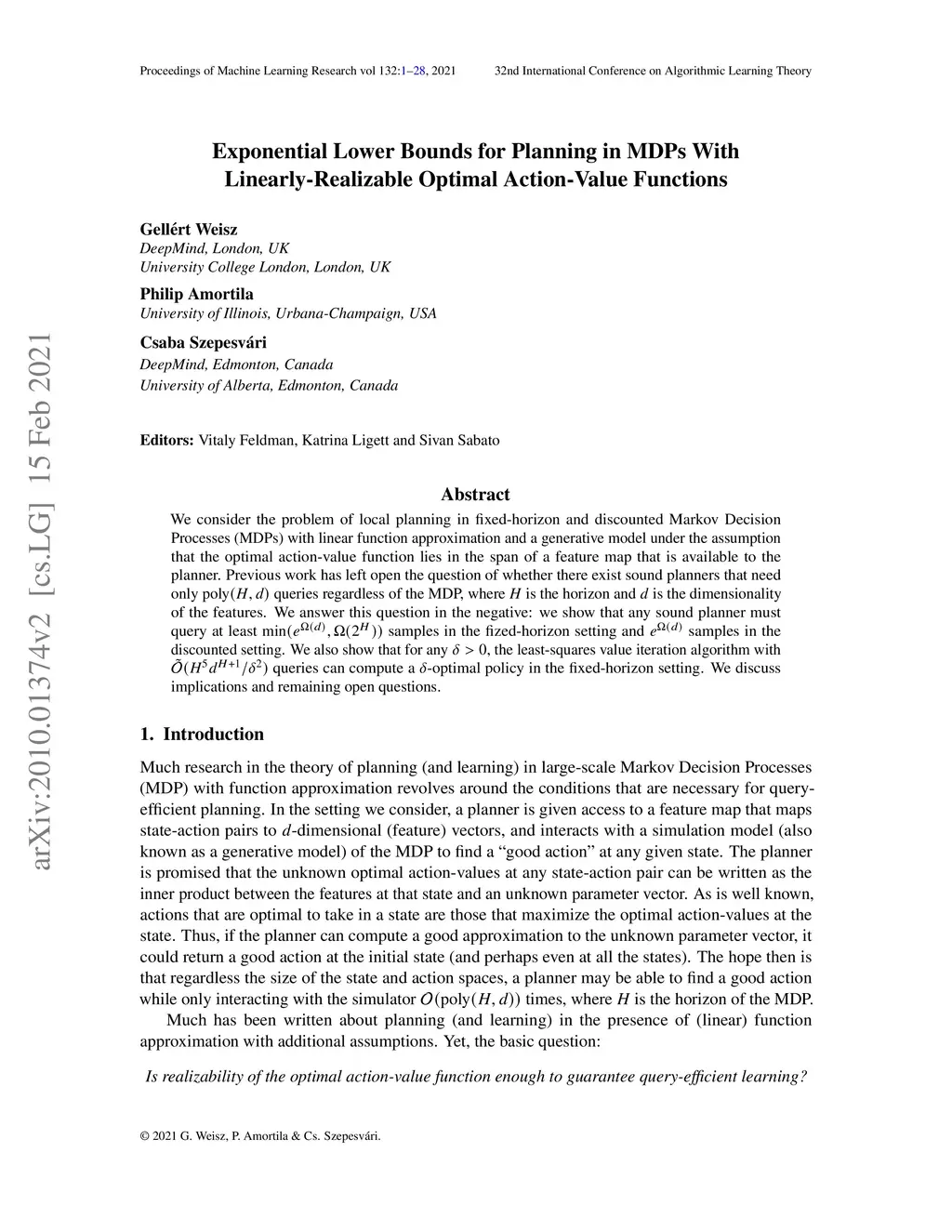 We consider the problem of local planning in fixed-horizon and discounted Markov Decision Processes (MDPs) with linear function approximation and a generative model under the assumption that the optimal action-value function lies in the span of a feature map that is available to the planner. Previous work has left open the question of whether there exist sound planners that need only poly(H,d) queries regardless of the MDP, where H is the horizon and d is the dimensionality of the features. We answer this question in the negative: we show that any sound planner must query at least samples in the fized-horizon setting and samples in the discounted setting. We also show that for any , the least-squares value iteration algorithm with queries can compute a -optimal policy in the fixed-horizon setting. We discuss implications and remaining open questions.